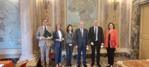His Excellency, Mr Alfonso María Dastis Quecedo, Ambassador Extraordinary and Plenipotentiary of the Kingdom of Spain in Italy, signed the Luxembourg Rail Protocol at a ceremony held at the UNIDROIT Headquarters in Rome. The Ambassador was accompanied by Mr Moisés Morera and received by the  Secretary-General Prof. Ignacio Tirado, Deputy Secretary-General, Prof. Anna Veneziano, Principal Legal Officer and Treaty Depositary Ms Marina Schneider, as well as Prof. Teresa Rodriguez de las Heras Ballell (UNIDROIT consultant and Spanish representative of the Rail Working Group).