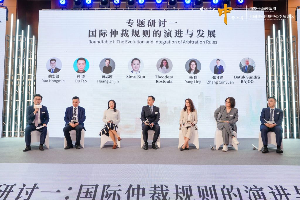 The roundtable featured five other speakers: Datut Sundra Rajoo (Director of Asian Arbitration Centre), Du Tao (Dean and Professor of ECUPL International Law School), Hunag Zhijin (Director of Arbitration and ADR North Asia, ICC), Steve Kim (Secretary General of Korean Commercial Arbitration Board International), Yang Ling (Deputy Secretary General of Hong Kong International Arbitration Centre), and Zhang Cunyuan (Head of Singapore International Arbitration Centre).